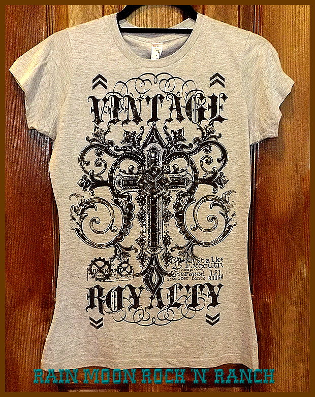 | Time to move 'em on out! Vintage Royalty Tee with lots of rhinestone embellishment normally 20.00 today 15.00 plus 3.75 shipping small-18" across chest medium 19" across chest large-20" across chest |